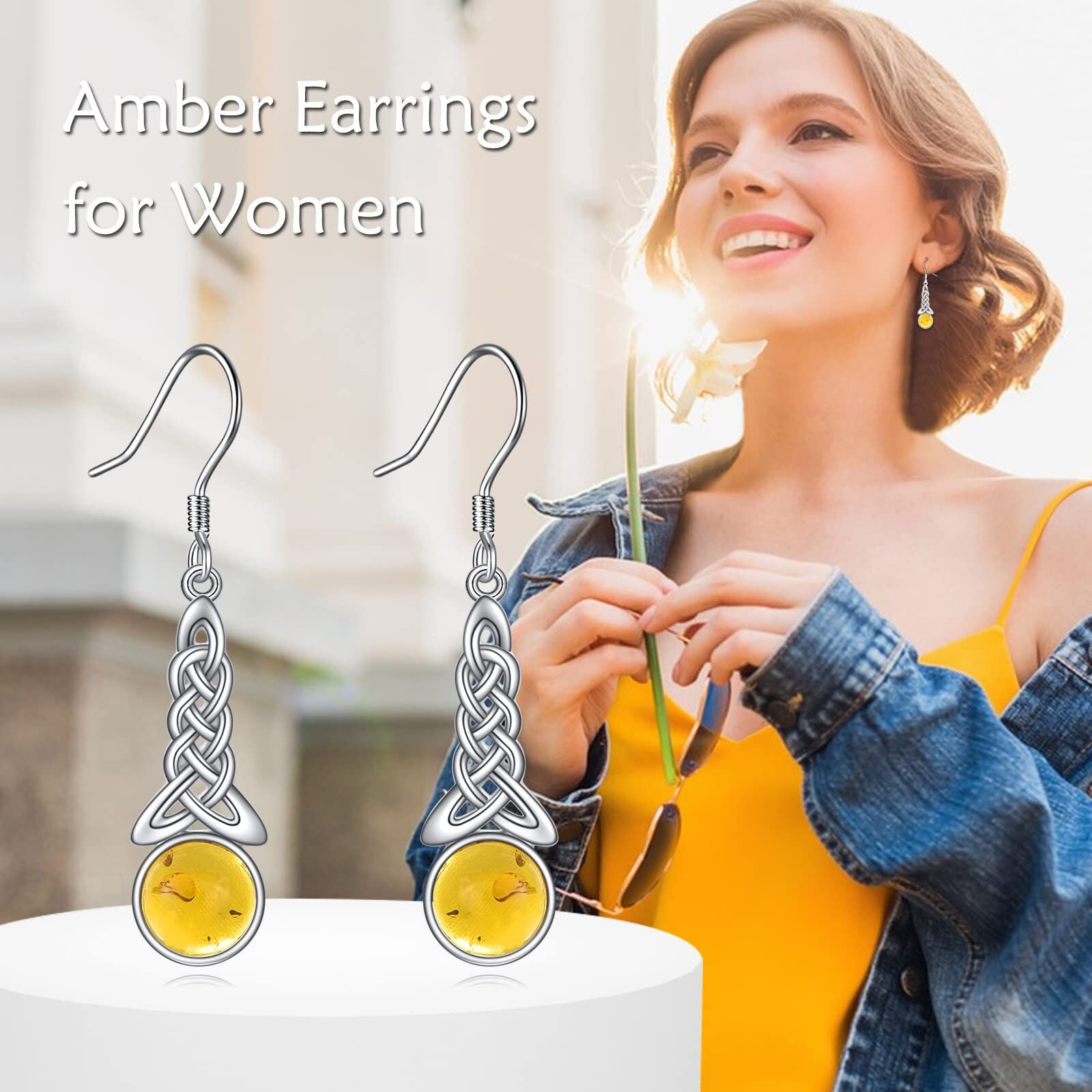 Whether you're seeking a thoughtful gift for your girlfriend, wife, daughter, sister, granddaughter, or mom, these earrings are sure to delight and leave a lasting impression. Celebrate special moments and create cherished memories with our Sterling Silver Celtic Knot Amber Dangle Earrings, where elegance meets meaningful design.